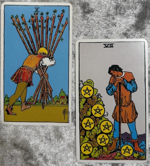今日は、責任や重荷を感じることがあるかもしれません。ワンドの10が示すように、目標に向かって努力を続けることが求められる日です。忍耐力と努力が必要ですが、その先には達成感が待っています。また、ペンタクルスの7が示すように、これまでの努力の成果を評価し、次のステップを考える時期でもあります。焦らずに計画を立て、着実に進むことが大切です。